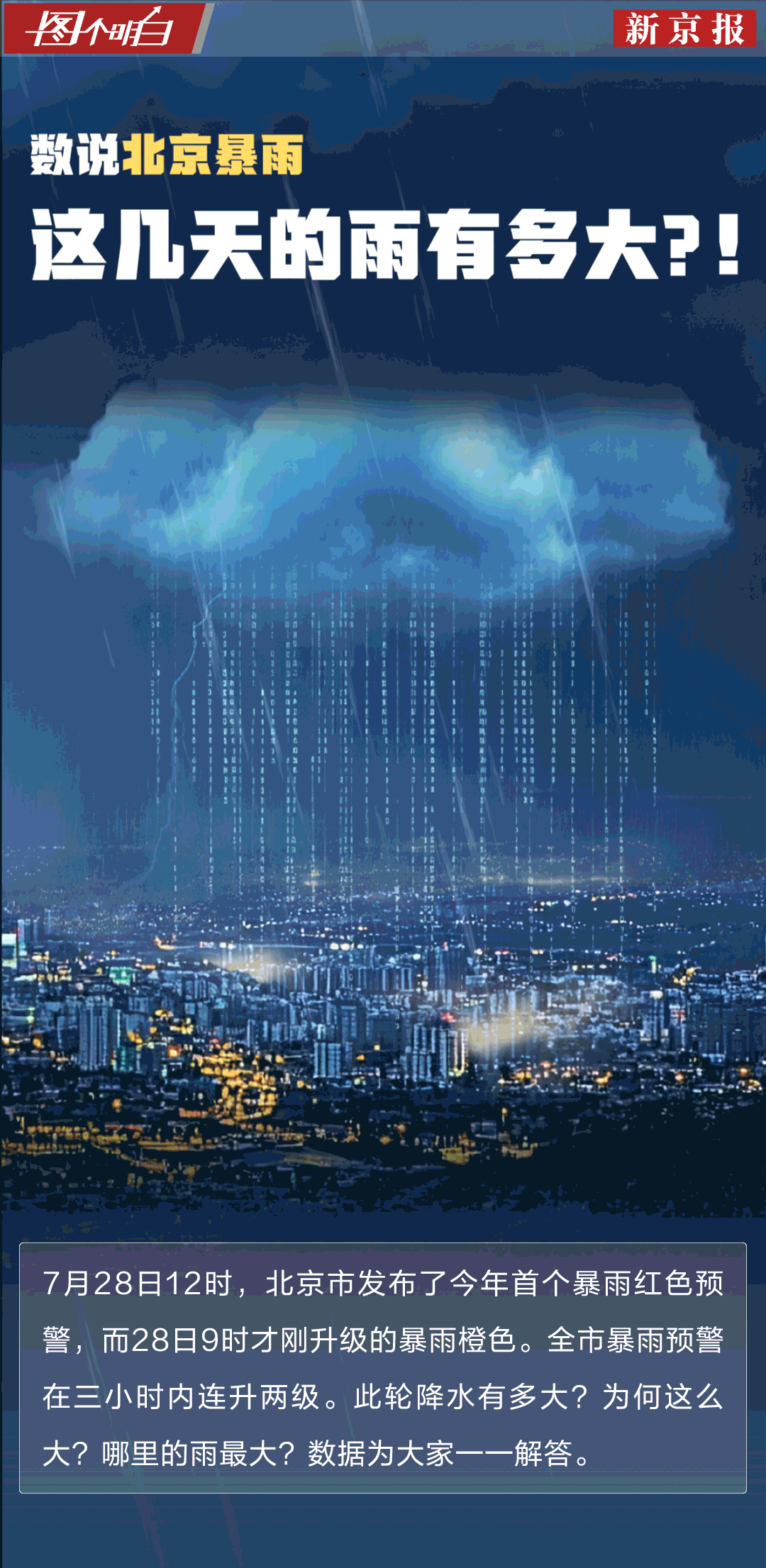 又是一夜大雨,从7月28日夜间到29日早晨9点,北京市平均降水量70.1毫米,最大降水量出现在房山阎村195.4毫米。景区全部关闭,今年首个暴雨红色预警,密云水库泄洪……北京这轮降水有多强?