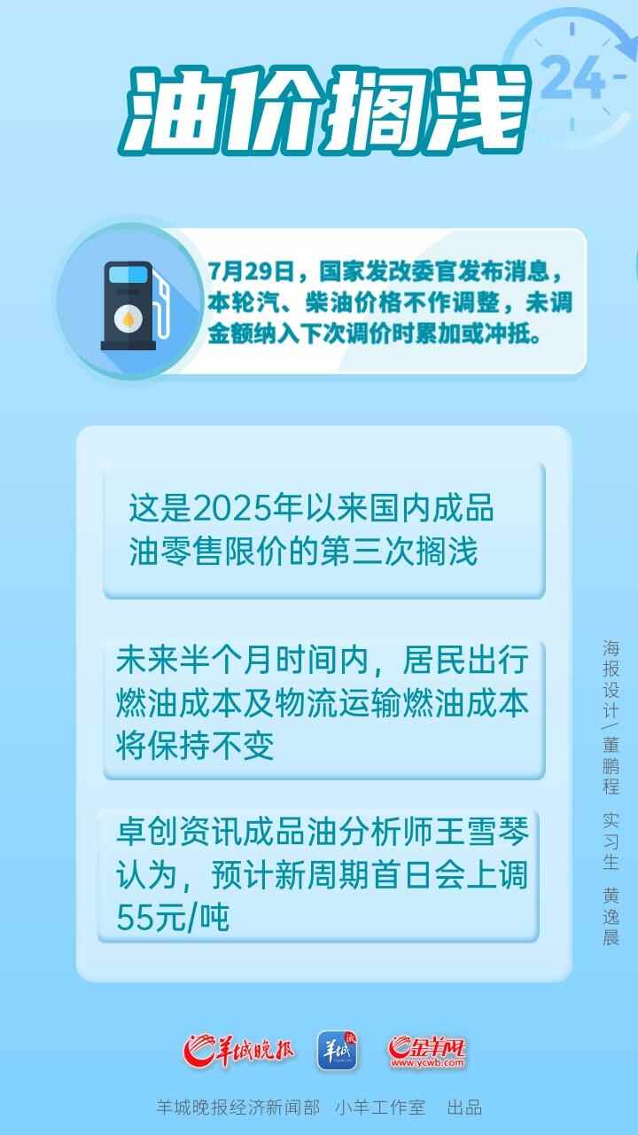 这是2025年以来国内成品油零售限价的第三次搁浅。在未来半个月时间内(7月29日24时-8月12日24时),居民驾车出行燃油成本及物流运输燃油成本将保持不变。