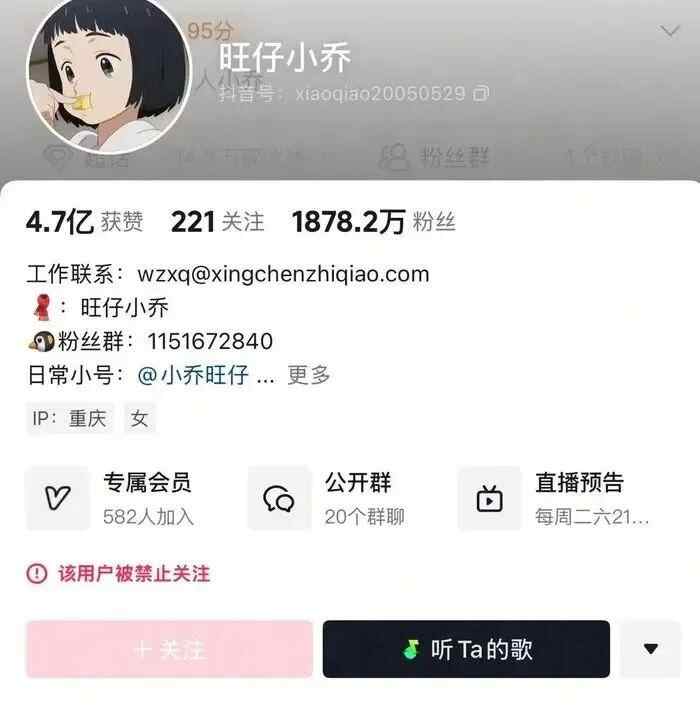 7月29日,多名网友发现,旺仔小乔的微博、抖音、小红书账号被禁言。