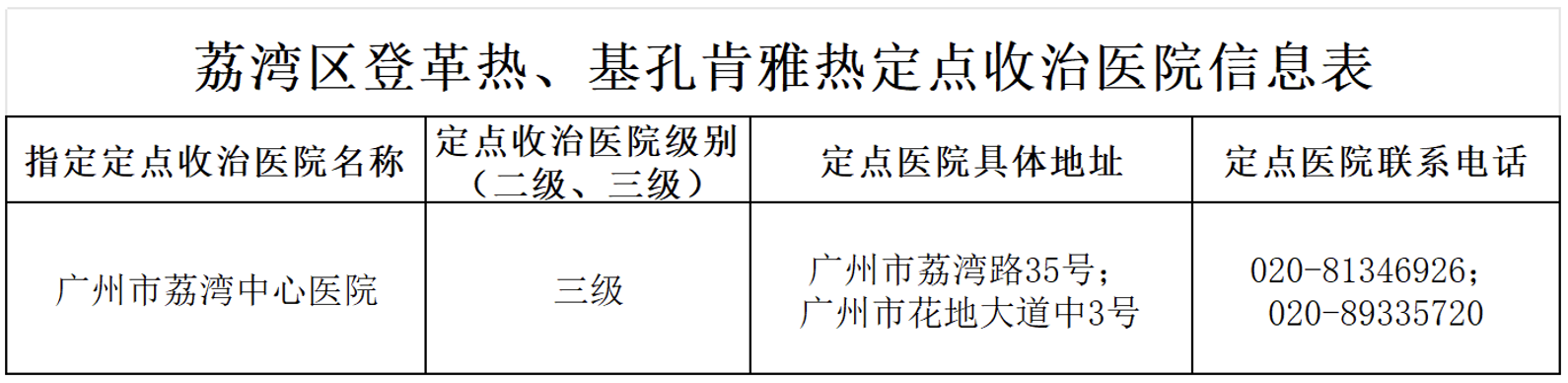 荔湾区提醒市民,若近期有基孔肯雅热和登革热流行地区和相关旅居史,一旦出现发热、皮疹、关节痛等症状,请及时前往荔湾区定点医疗机构就诊,并主动告知医生近期的旅居史和蚊虫叮咬史,配合医生进行检查诊断。