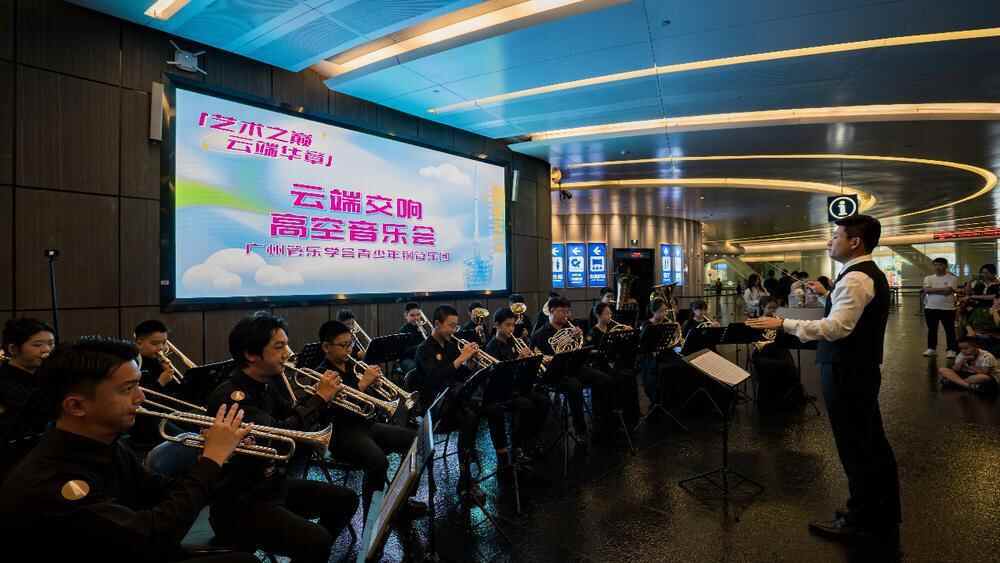 当日,广州塔化身 “高空音乐殿堂”,广州管乐学会青少年铜管乐团的小演奏家们,为现场观众演奏了五首经典曲目,从激昂澎湃的《我爱你中国》到庄严雄壮的《中国军魂》,从经典不朽的《歌唱祖国》到悠扬动听的《音乐厅号角》。现场的观众们或闭目聆听,或轻声哼唱。