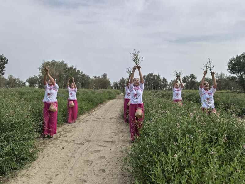 在众多防沙治沙的探索中,罗布麻成为了新疆的“明星植物”。7月26日,由自治区党委网信办主办,巴音郭楞蒙古自治州党委宣传部、党委网信办承办的“高质量发展看新疆”网络主题活动团队走进尉犁县罗布麻种植园,只见一群身着彩衣的姑娘,一边跳着自编采茶舞,一边唱着《罗布麻之歌》:“罗布麻茶,尉犁的茶,浓浓的茶香里有神话……”