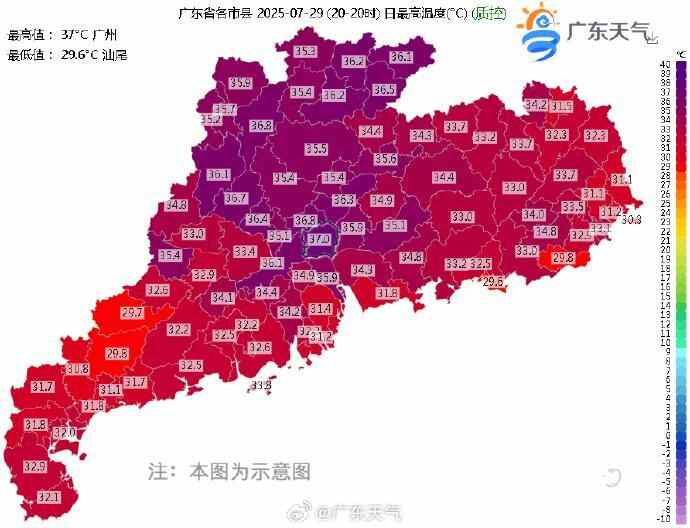 广东的短时降水也不容小觑。据气象水文监测,7月29日8时到17时,各市雨量最大的镇街有:云浮云安区白石镇159.2毫米、揭阳榕城区凤美街道85.5毫米、江门新会区睦洲镇84.5毫米、惠州博罗县罗阳街道82.5毫米、茂名信宜市白石镇82.3毫米。不少市县的气温飙升到35℃+,广州以37℃登顶。