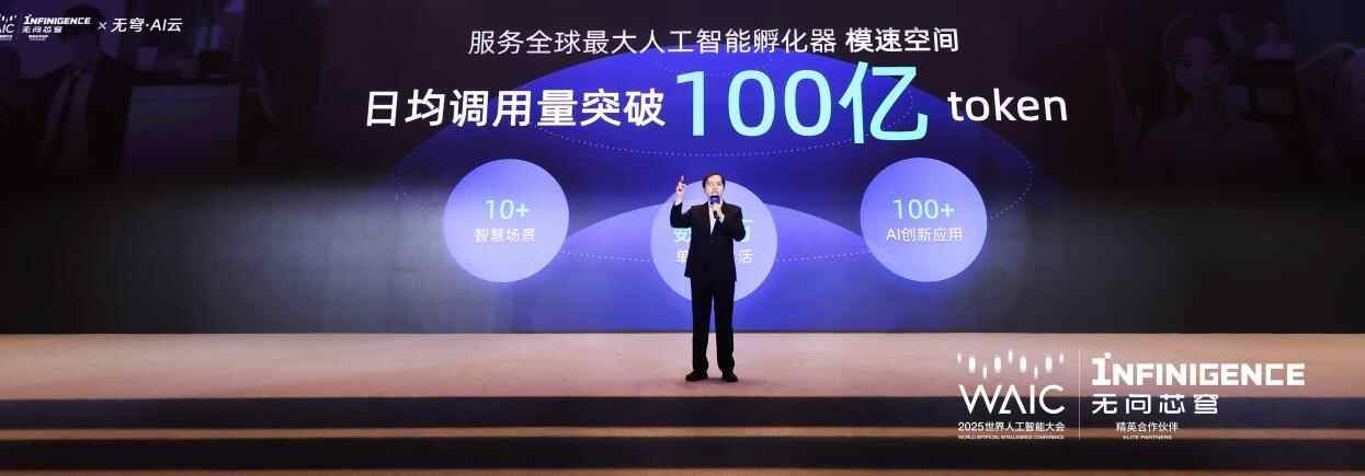 现场透露,无问芯穹服务的全球最大人工智能孵化器——上海模速空间,日均Token调用量已成功突破100亿大关,累计服务10余个智慧场景、支撑100多个前沿AI创新应用,单应用月活高达数千万。