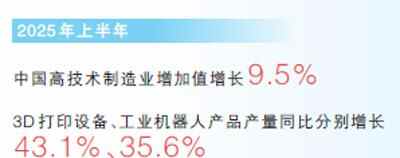 “技术驱动”“创新驱动”已成为中国经济新的增长模式。中国在新兴领域加大投资,这些领域的发展不仅为民众提供了质量更高的产品与服务,也对其他领域产生正向引导作用,创造更多的国内需求。中国推动大规模设备更新,利用大数据、人工智能等技术和自动化生产线等,对传统制造业进行自动化、智能化改造,取得积极成效。2025年上半年,中国高技术制造业增加值增长9.5%,3D打印设备、工业机器人产品产量同比分别增长43.1%、35.6%。