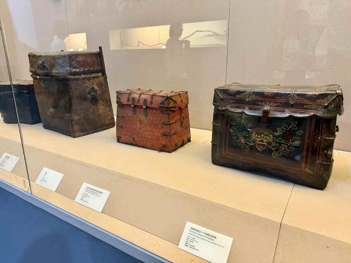 西藏牦牛博物馆中几件牦牛皮制作而成的箱子。