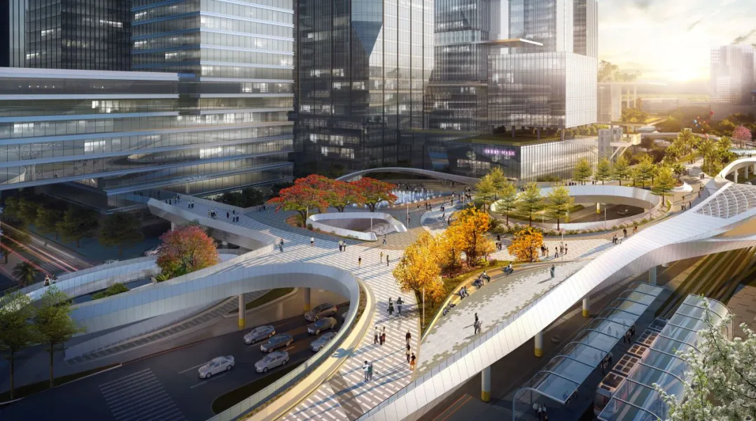 琶洲滨江立体人行交通工程是广州首个“空中花园”式立体交通综合体,预计7月底完成主体工程。项目建成后,将与琶洲西区19个地块的二层连廊系统深度融合,形成覆盖整个片区的“空中漫步道”。