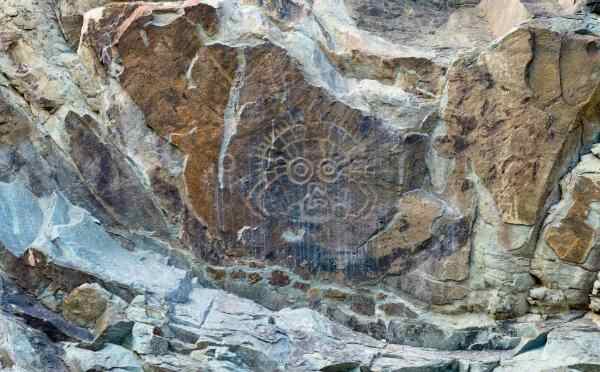 这是7月23日拍摄的贺兰山岩画景区内著名的标志性岩画“太阳神”(无人机照片)。