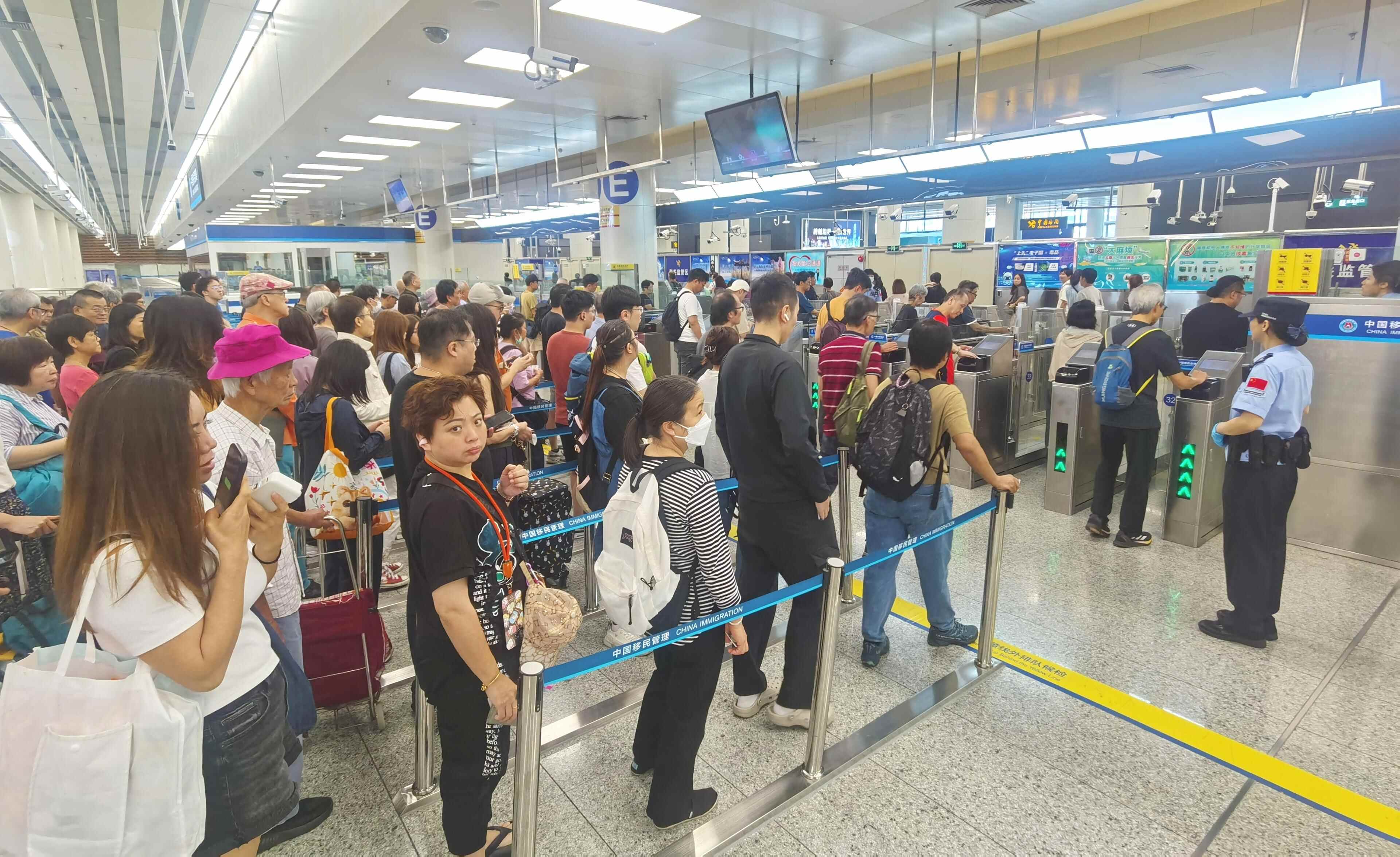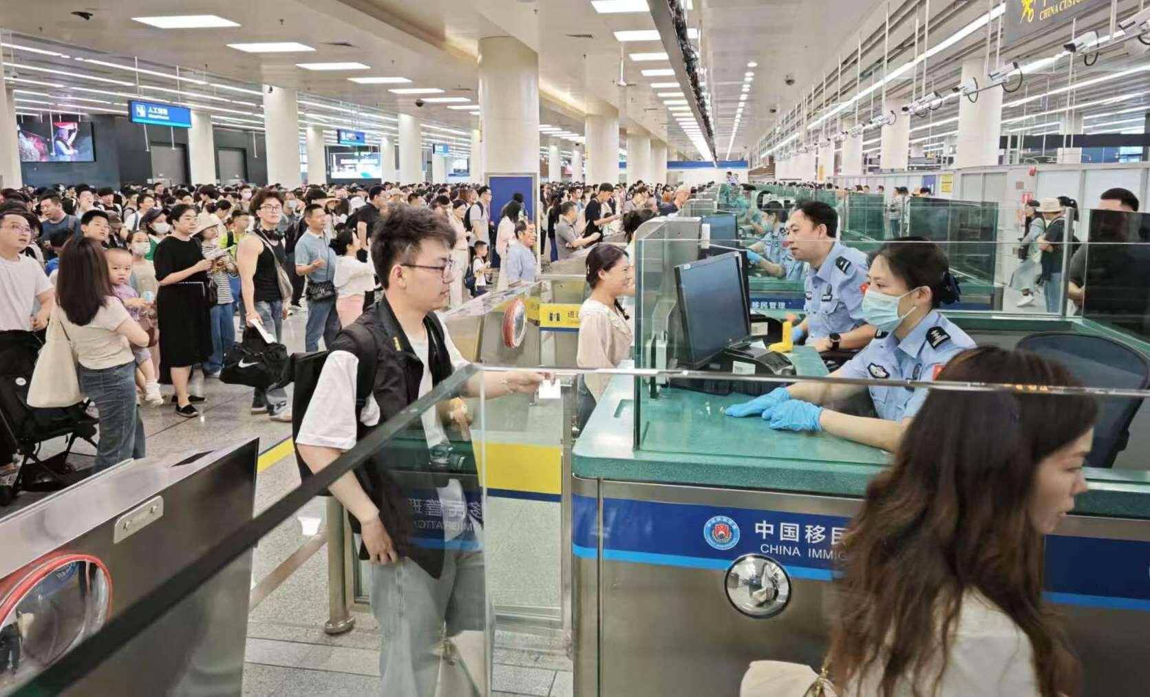 据深圳出入境边防检查总站统计,7月26日,皇岗边检站执勤民警全天共查验出入境人员30.8万人次,创复关以来新高,其中入境旅客超过17万人次、出境旅客13.7万余人次。
