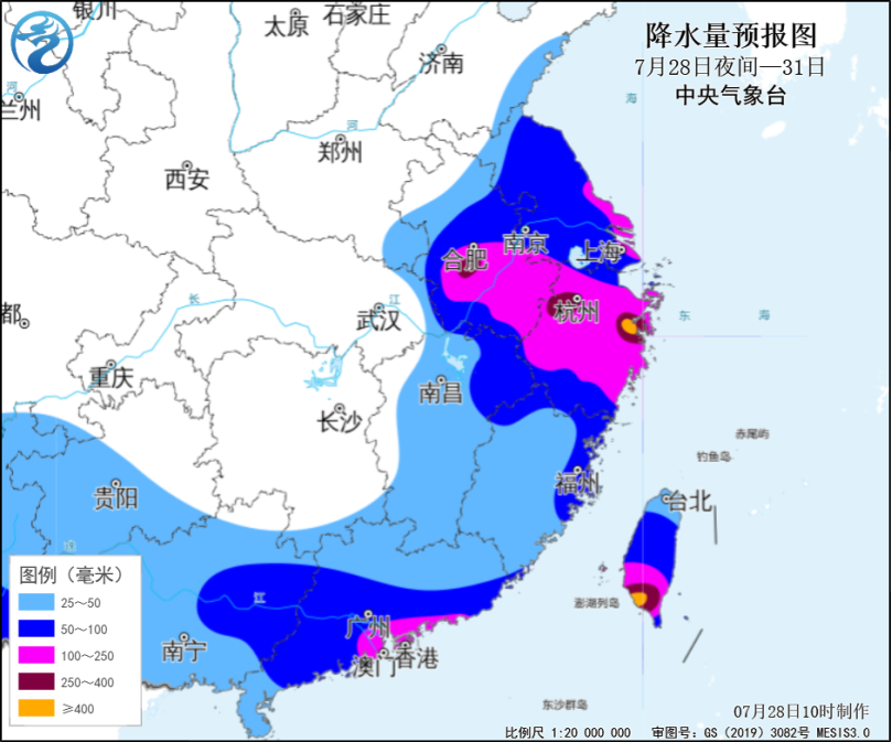 同时强风影响也不可小觑,今天14时至明天14时,东海大部、台湾以东洋面、杭州湾、长江口区、上海沿海、江苏南部沿海、浙江沿海将有7至8级、阵风9至10级的大风,台风中心经过的部分海域风力可达9级、阵风10至11级。