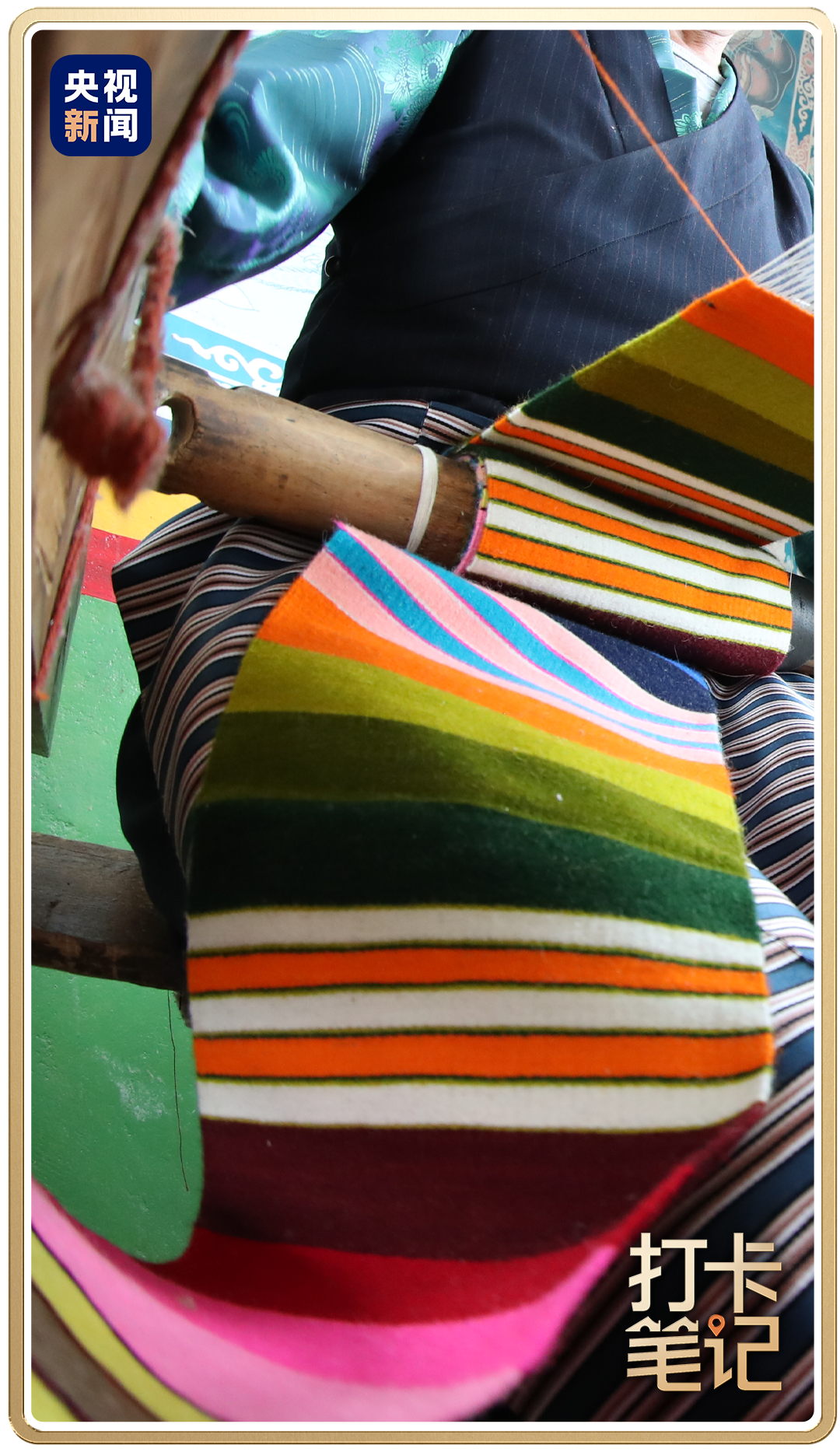 在杰德秀古镇,可以欣赏到非遗邦典。邦典是一种彩色围腰,也是藏装的重要装饰,具有悠久的历史。