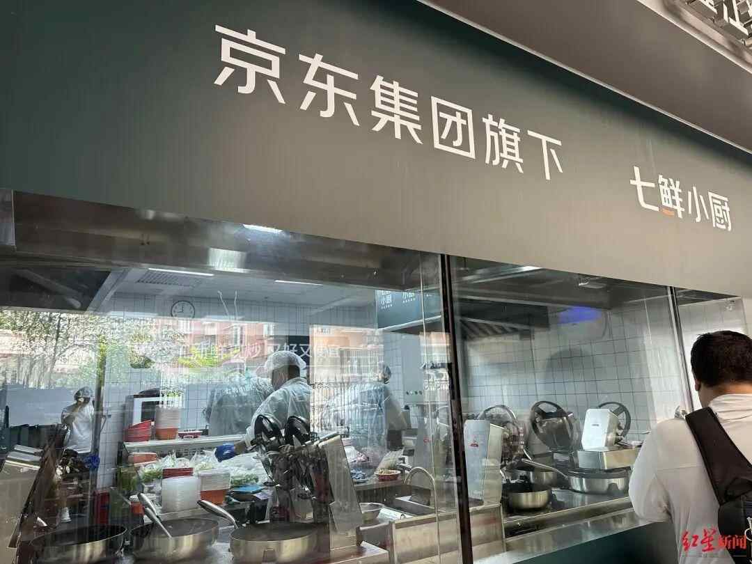 记者实地探访京东七鲜小厨首店,该店位于北京市东城区长保大厦一层,现场工作人员称昨天爆单,“订单量比往日翻了一倍还多”。该门店没有堂食位置,只有“外卖+自提”的形式,厨房区域设有玻璃明档,来往人群都可以“一窥究竟”。