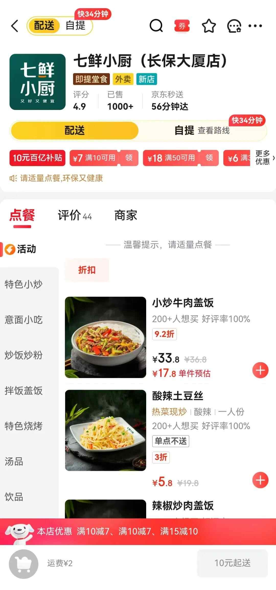 7月22日,京东宣布将花10亿元推“七鲜小厨”外卖餐饮供应链模式。晚间,京东七鲜小厨业务负责人刘斌回应了记者关于菜品定价、爆单等问题。