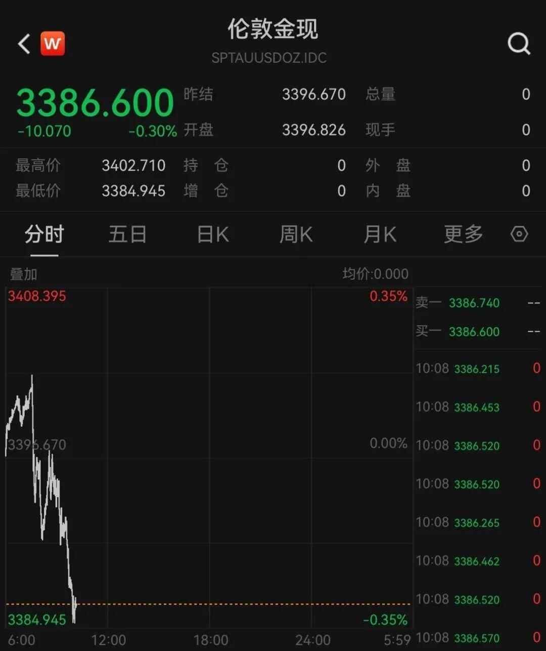 不过22日早间,现货黄金高位回落,盘中直线下挫,截至上午10时,报3386.600美元/盎司。