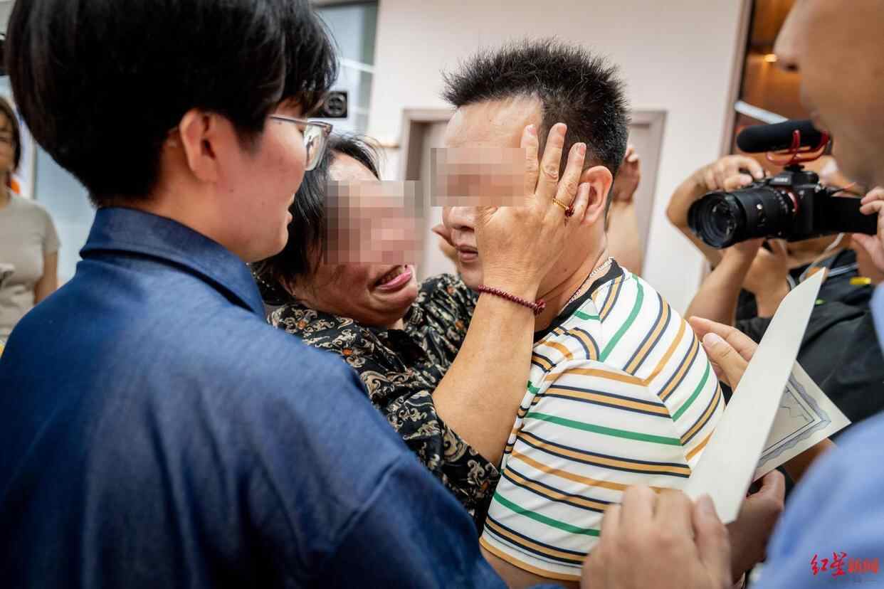 7月22日上午,四川绵阳市公安局刑侦支队,55岁的张英(化名)在时隔37年后,再次见到儿子时,抱着儿子失声痛哭。她在认亲现场给儿子送了6万元现金,称尽自己最大能力“弥补”儿子。