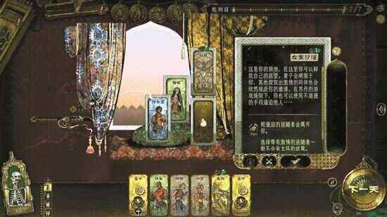 游戏构建了一个如《一千零一夜》般诡谲多彩、残酷迷人的东方奇幻世界。游戏的核心玩法围绕着“苏丹卡”展开,玩家每天都必须抽取一张“苏丹卡”,而且必须在七天内完成卡片上的极端任务,否则将被处决。这就像是一场与时间的赛跑,玩家需要合理分配自己的资源、盟友和行动指令,想尽一切办法满足苏丹卡的要求。
