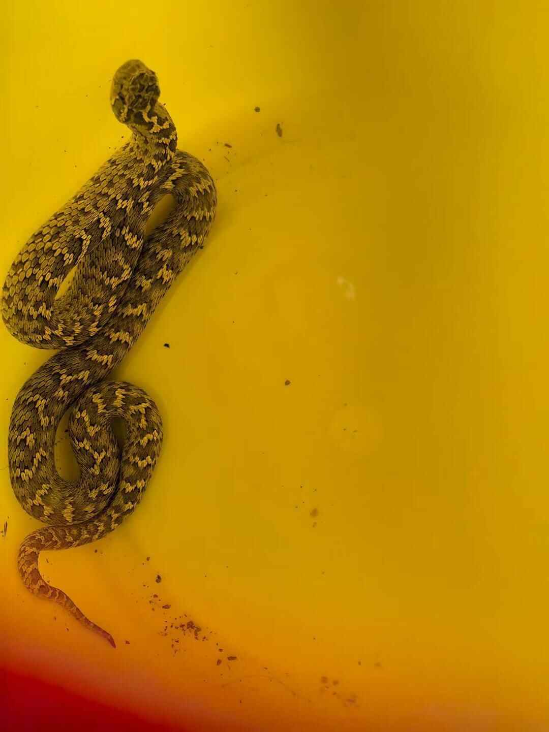 公开资料显示,阿拉善蝮蛇在我国西北地区分布较为广泛,在青海省内,它主要分布于青海西部,如德令哈、都兰等地,主要栖息在干燥的荒漠戈壁环境中。阿拉善蝮体型较为细长,头部呈三角形,表皮粗糙,无光泽。体表为沙黄色,体两侧有黄褐色的规则的块状斑。行动较为缓慢,受到惊扰后往往盘成一盘,尾尖不断震动,“沙沙”作响,主要捕食蜥蜴和小型鼠类。
