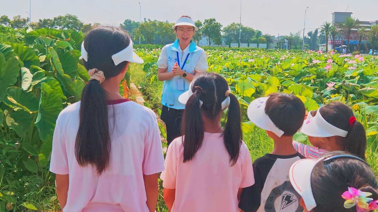“外语智课”突击队深入乐农合作社莲田、园墩村葡萄园及乐农西瓜田开展双语摄制:在莲田顶着烈日拍摄《莲香飘万里:Lotus Seed》宣传片,反复调试光线以呈现莲子饱满的色泽;同步创作教学视频,以莲子为教具融入采摘场景,让知识于乡土生根。在葡萄园聆听果农讲解,收集《Vineyard葡萄园》视频素材,在教学视频中结合葡萄特写教授“plump(饱满的)”等词汇。在西瓜田边,拍摄《乐农西瓜,甜透一夏》宣传片,传递劳动光荣的理念;教学视频《Watermelons西瓜》则结合“water up(注水)”等短语与浇灌实景,使书本的词汇鲜活可感。