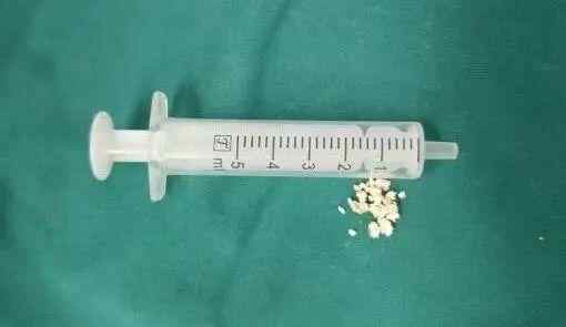 取出的白水泥样的痛风石。图源:杭州市第一人民医院