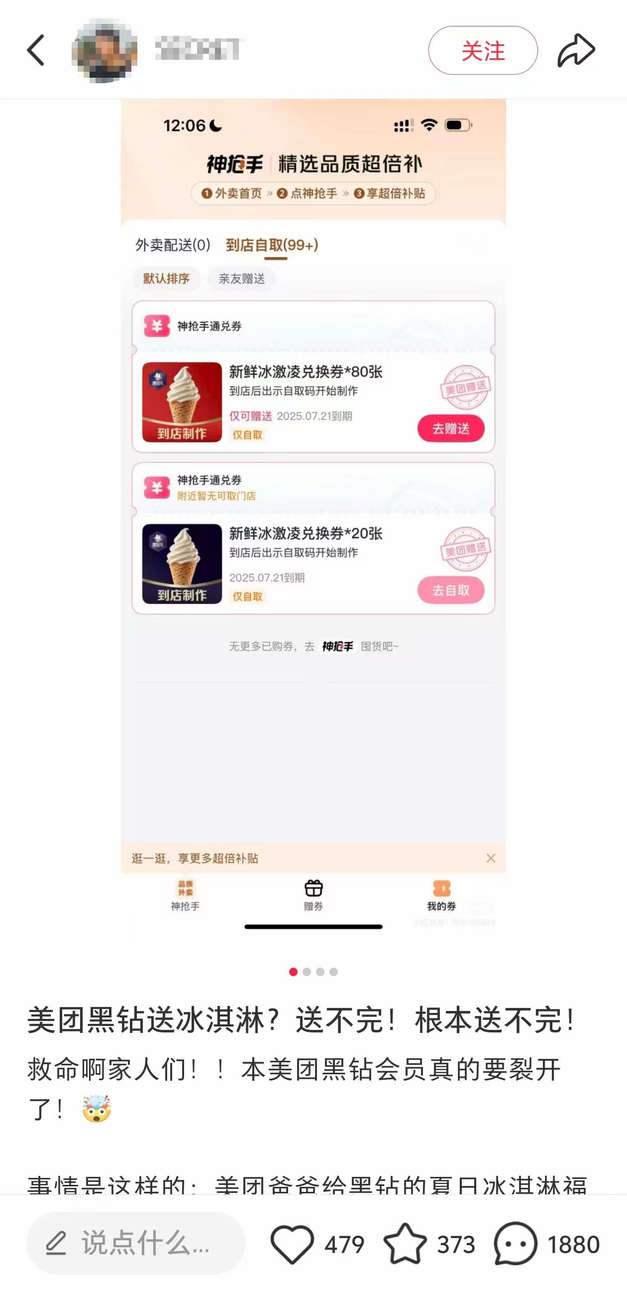 有网友在相关评论区表示,这个是美团黑钻的福利。记者在社交平台上发现不少网友意外收到了这项福利。