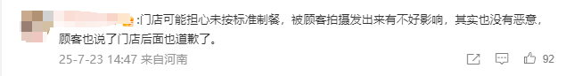 也有网友表示,门店可能担心未按标准制餐,被顾客拍摄发出来有不好影响,其实没有恶意。