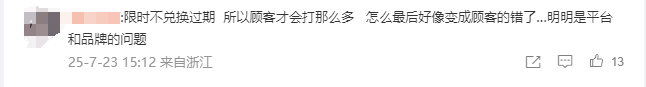 有网友表示,因为限时,不兑换就会过期 ,所以顾客才会打那么多,明明是平台和品牌的问题。