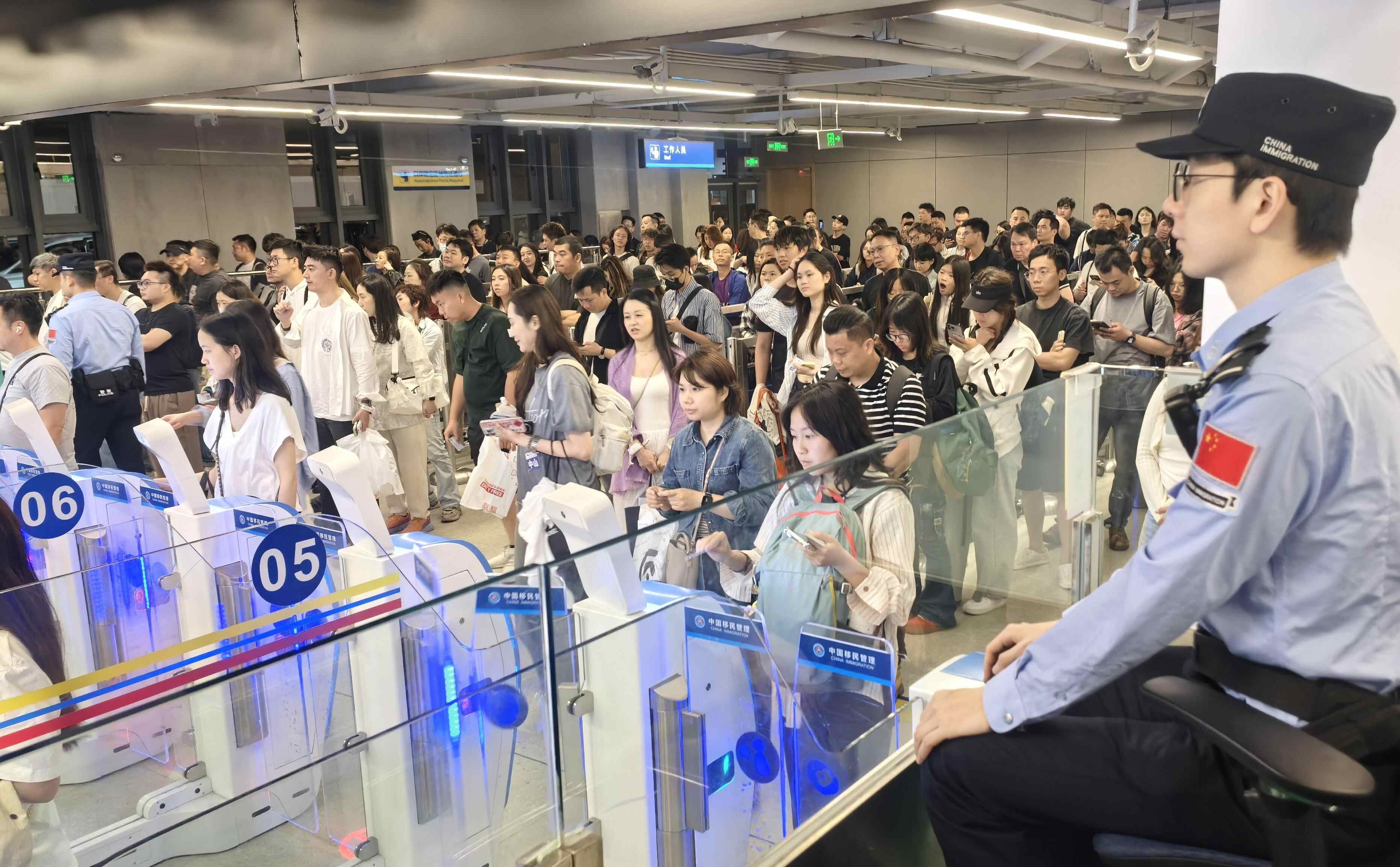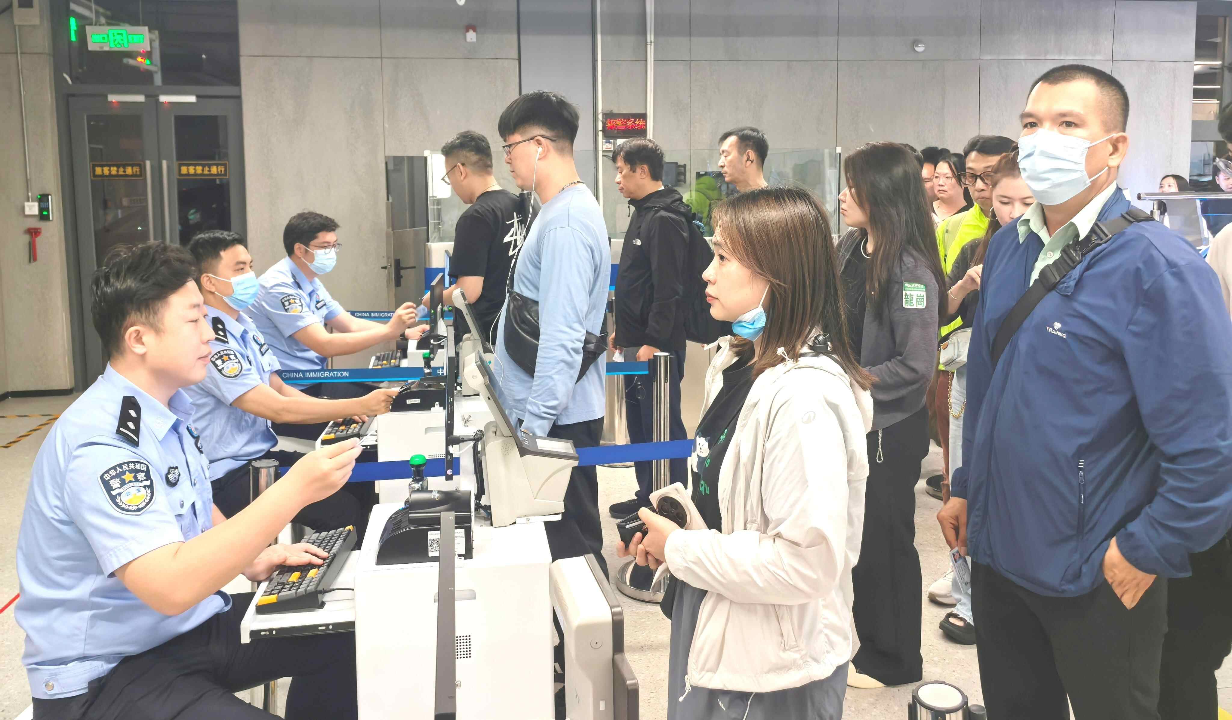 在演唱会等跨境文旅经济带动下,口岸客(车)流已连续多次突破复关后峰值,4月14日查验出入境车辆1万辆次,为口岸设计流量的3倍;5月25日查验出入境人员7万人次,为口岸设计流量的2.3倍,整体呈现“跨境客(车)流量逐步增多(年增幅超20%)、高峰时段逐步延长(从原先的23时至次日凌晨1时延长至次日凌晨2时30分)、每小时查验流量逐步上升(高峰时段每小时查验量较常态增加80%)”的趋势。