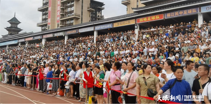 “村超”现场,观众席人声鼎沸,热闹非凡。图/杨佐江