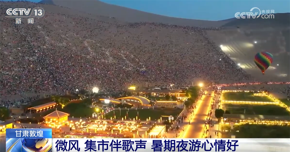 眼下,甘肃敦煌迎来暑期游客高峰。在鸣沙山月牙泉景区,每周有四场星空演唱会。此外,今年还引入了夜间集市,让游客的旅游体验更加丰富。