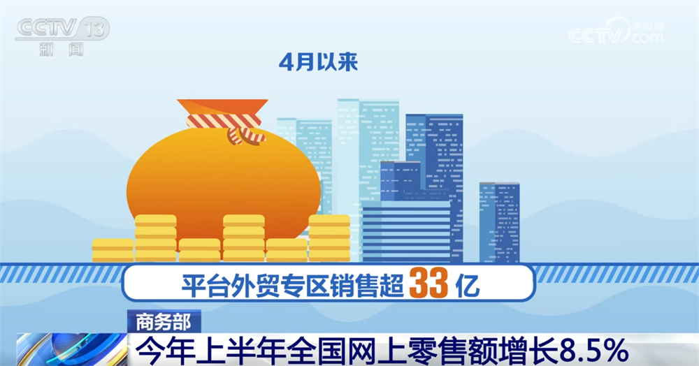 产业电商激发转型新潜力。商务部指导20余省市、主要电商平台举办超280场产业对接,覆盖超2200家次企业,达成2万多个合作意向。据商务大数据监测,1—6月农产品、电子产品、纺织产业电商交易额增长17.2%、7.3%、6.2%。“丝路电商”伙伴国增加到36个,与肯尼亚、孟加拉、埃及签署电商合作协议。“丝路电商”合作先行区形成可复制推广的10余项创新成果,“一次申报、双边通关”拓展交互信息至跨境物流,与欧盟月传送量增至3万票。