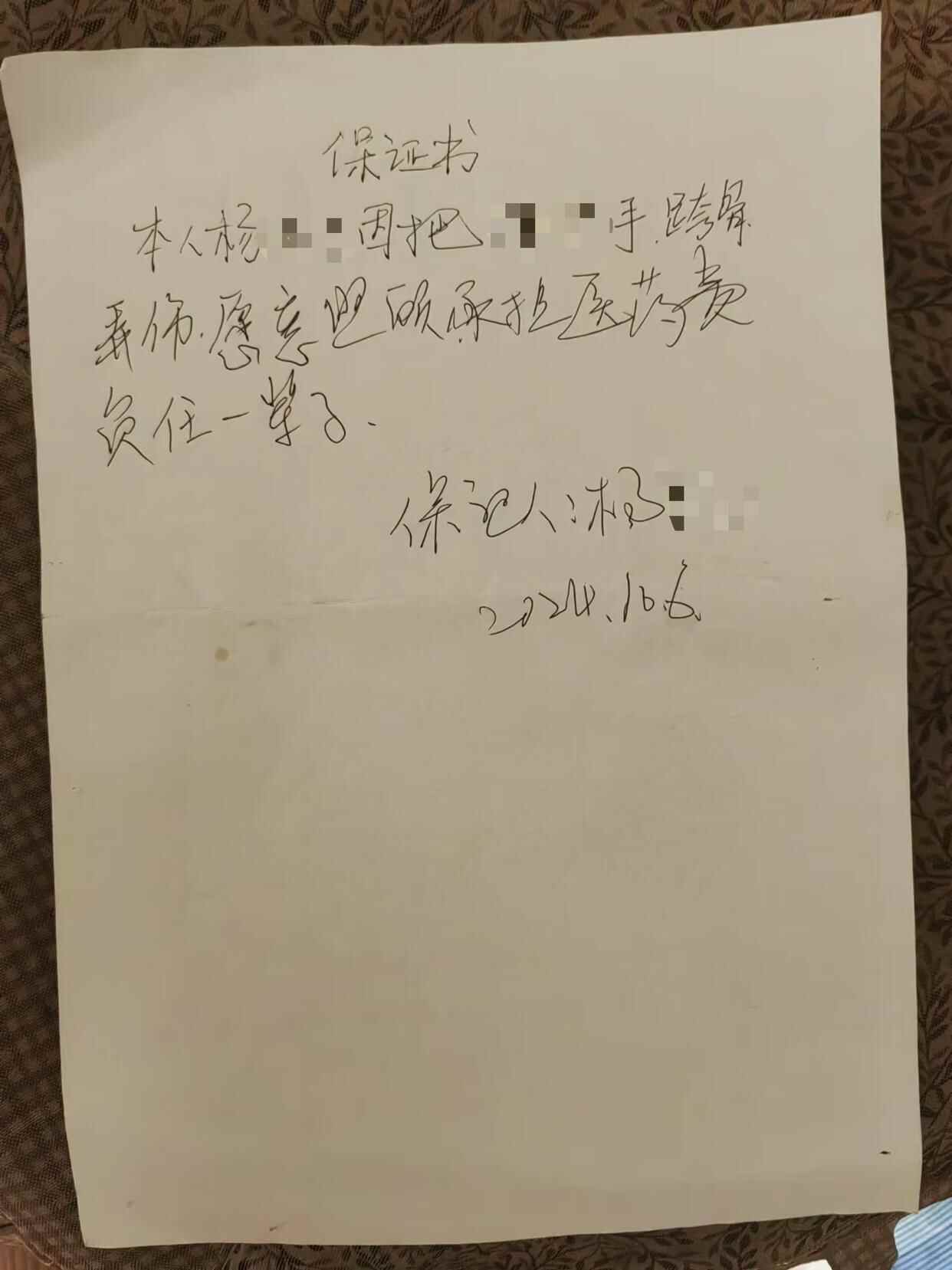 杨某写给小玲的保证书 受访者供图