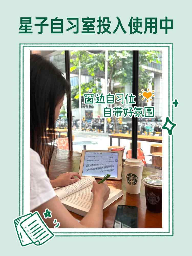 记者在星巴克广州的微博看到,其打出了自习室的标语:“冷气刚刚好,清醒不上头。插座多到不用抢,电子设备随时满电。座位舒适有氛围,打卡学习两不误。”