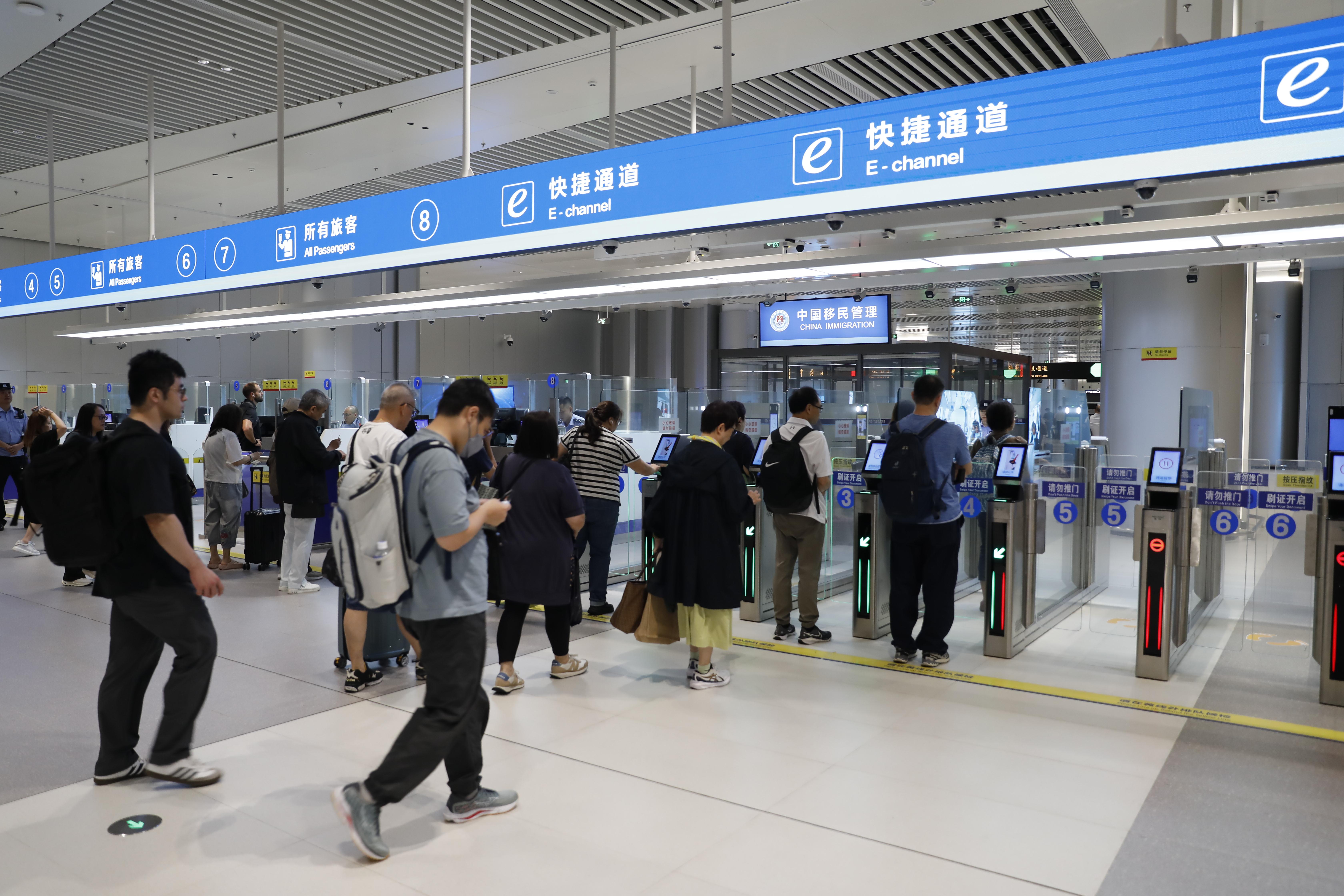 “虽然因为台风耽误了行程,但现在通关很顺利,边检的查验也很便捷,感觉很满意。”一位旅客在通关后这样说道。
