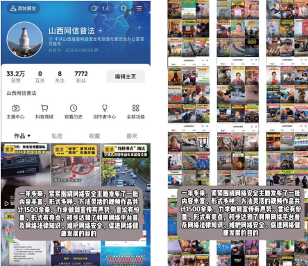 此外,山西注重群众参与式创新,让普法从“单向传播”走向“全民共创”。太原市以“123 工作思路”为指引,发动群众文艺骨干组建245支法治文艺演出队,6900 余名群众化身“普法宣传员”,通过短视频、直播等形式演绎身边法治故事,实现了“专业普法”与“群众参与”的双向互动。该模式获司法部肯定并在全国推广,在互联网平台大放异彩,放大了科技普惠价值。
