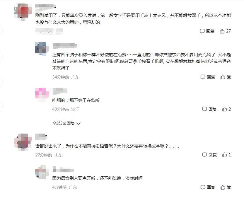 这一功能依托微信内置的语音识别技术,日常交流中的普通话转换准确率较高,基本可以代替手动输入。