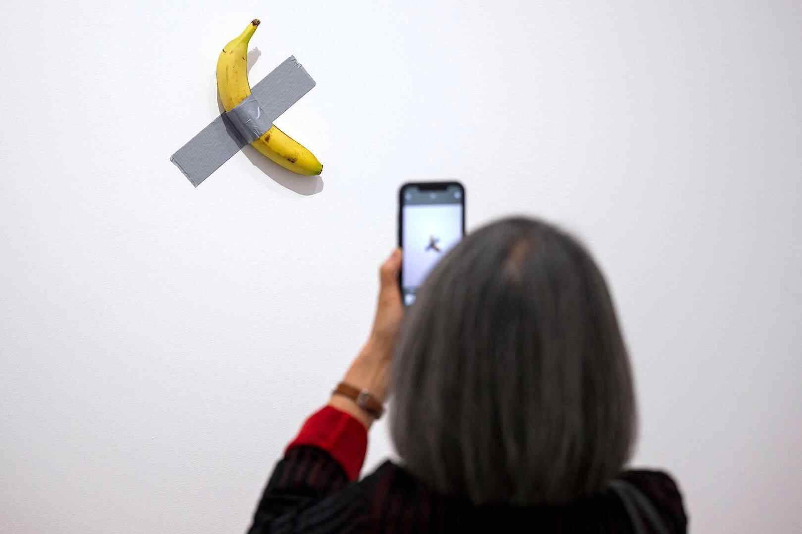 事实上,这并非《喜剧演员》第一次被“吃掉”。早在2019年,该作品首次亮相美国迈阿密巴塞尔艺术博览会时,就曾被表演艺术家大卫·达图纳当众剥皮食用。他称自己在观展时“突然感到饿了”。这场即兴行为迅速成为当年艺术界的热搜话题,而作品也在展览期间以12万美元的价格成功售出。