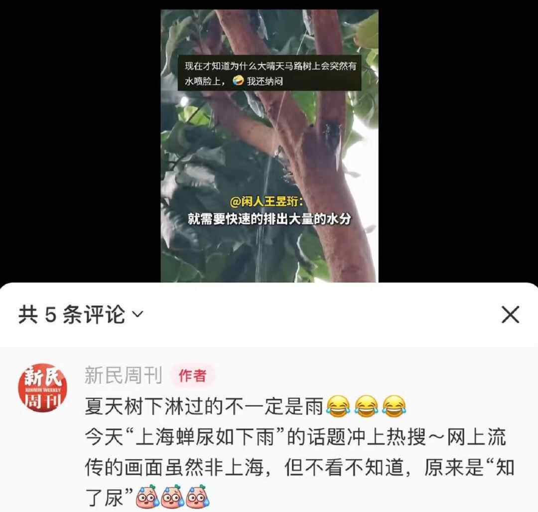 随着盛夏的到来,近日,不少上海市民反映,今年蝉的数量较往年有明显增多。有人称,被夜间蝉鸣吵得无法入睡,也有人被树下滴液困扰。