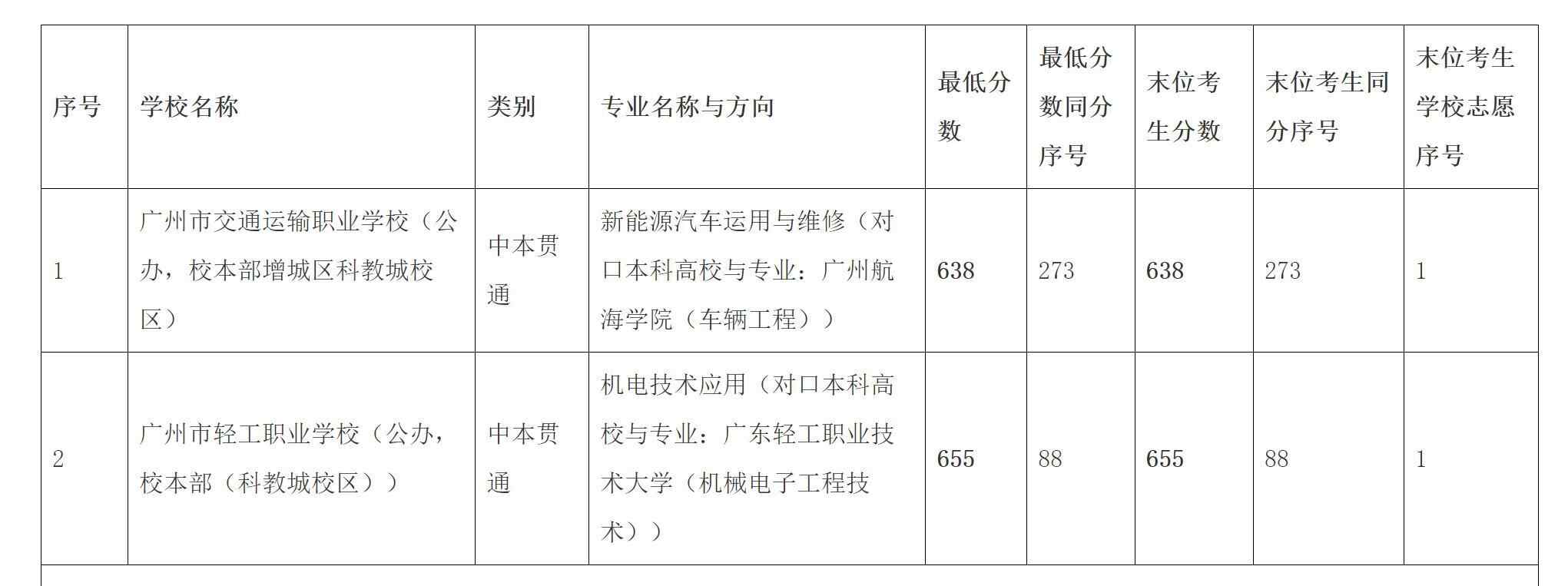 中本贯通方面,最低录取分数为638分。