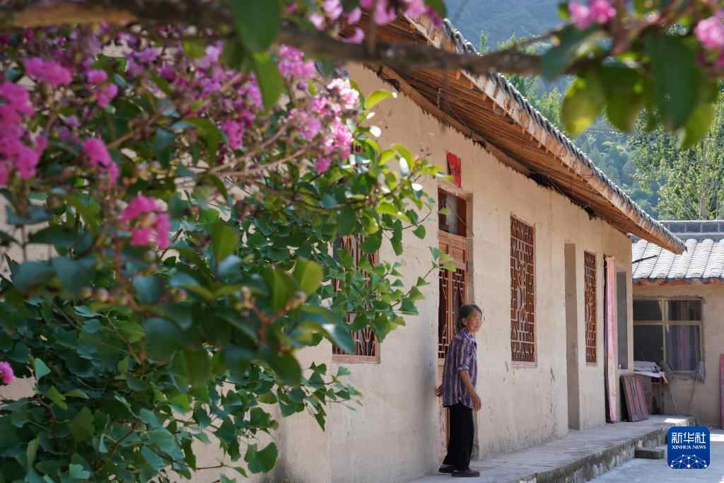 田河村村民在自家的院子里纳凉(7月15日摄)。