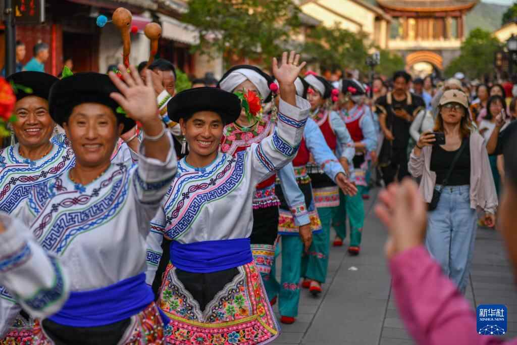 如今,巍山县南诏文化广场化身露天舞场。彝家儿女拉着游客的手,感受独特的肢体韵律。不少游客慕名而来,只为亲睹彝族打歌风采。