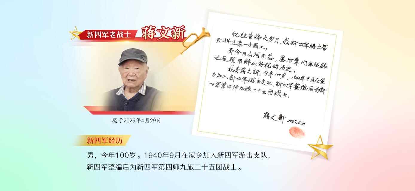 80年后,前行路上,如何从新四军的红色基因中汲取强大力量?新华日报·交汇点新闻派出多路青年记者,组团寻访80位百岁新四军老战士,重磅推出《归来仍是少年》系列融媒报道。每期由8位老战士联袂讲述,在一个个动人故事里记录历史,在一句句深情寄语里共绘未来,弘扬“初心不改,归来仍是少年”的主题精神,激励我们不断攻坚克难,书写中国式现代化建设风华正茂的新诗篇。