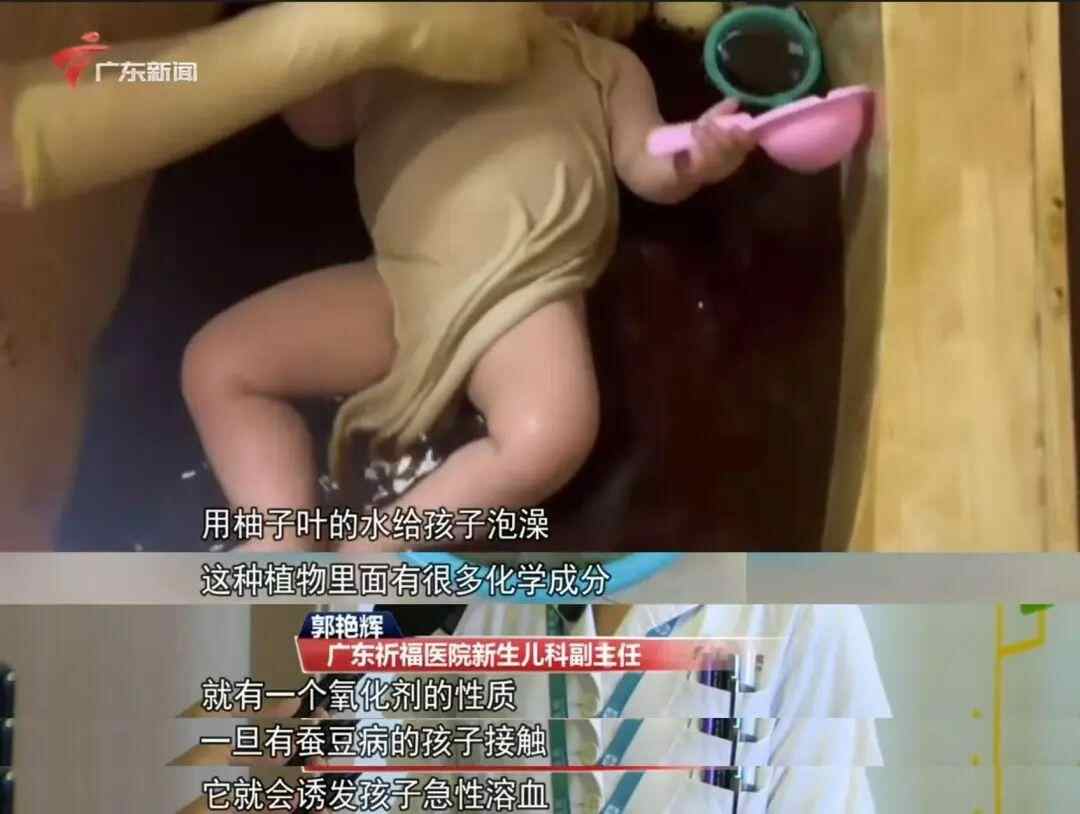 医生了解得知,原来这名宝宝患有蚕豆病,胆红素浓度突然飙升,家人误信偏方用柚子叶给其泡澡。