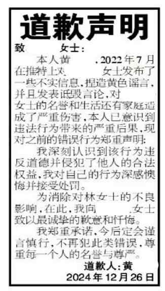 造黄谣是一种极其卑劣的行为,成本极低,伤害力极强。一张图、几句话,就能让受害者社会性死亡。黄某们躲在屏幕后,用龌龊的想象践踏他人尊严,却鲜少受到严惩。此案中,黄某仅被拘留10日罚款500元,调解书成一纸空文,直到被告上法庭,拖到强制执行才登报道歉。
