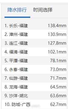 另外,台风“隔山打牛式”降雨还打到了福建。受台风外围环流影响,7月20日起福建南安、漳州遭遇强降雨,局地出现积涝、山体滑坡。昨天8时至14时,福建多地降雨猛烈,降雨量排行榜中,前八均为福建站点。