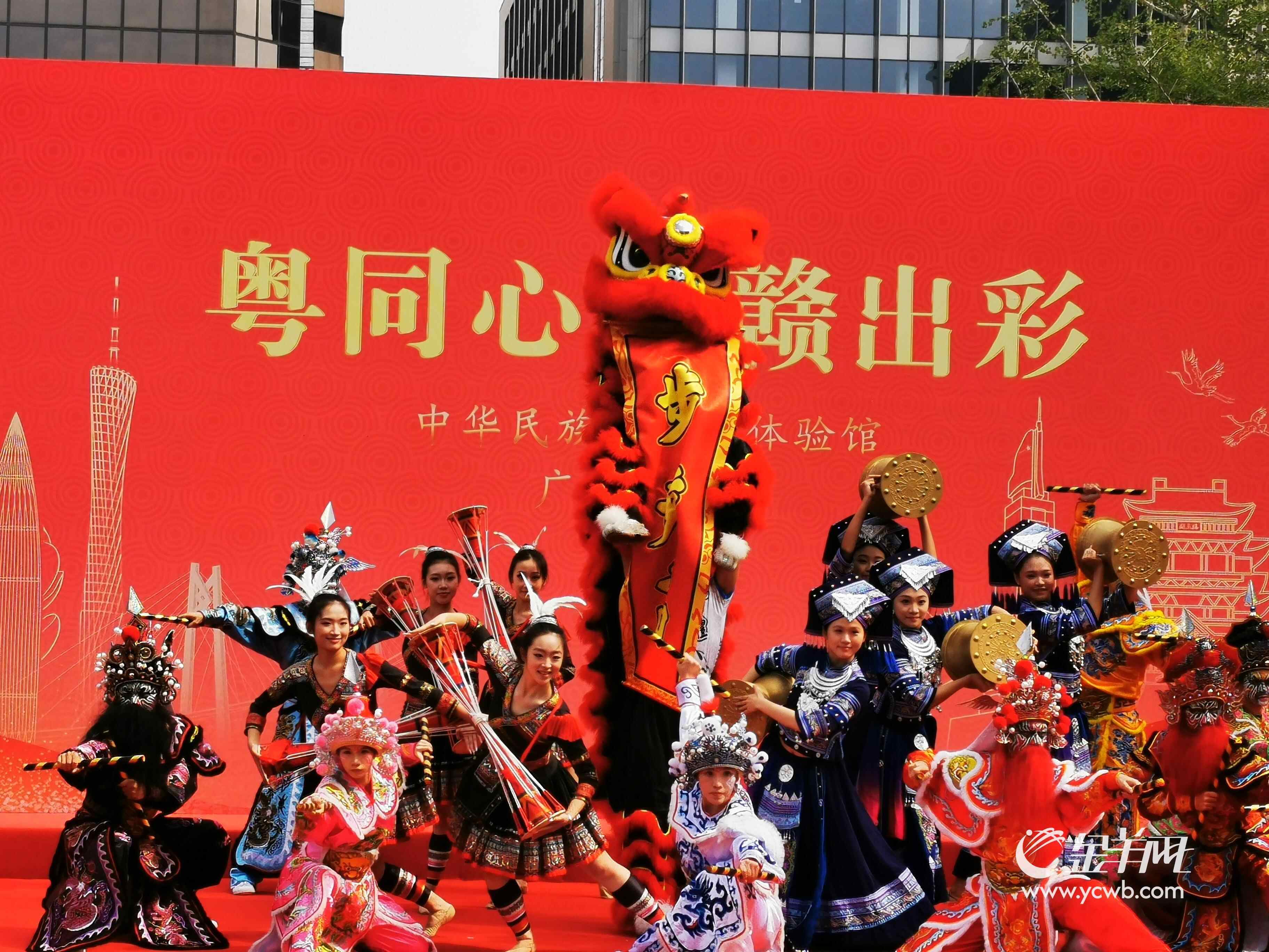 开展仪式上表演了广东、江西及中央民族歌舞团选送的5个节目。其中,广东2个节目分别是鼓乐舞蹈《三鼓同奏振兴曲》和合唱《真的爱你》。
