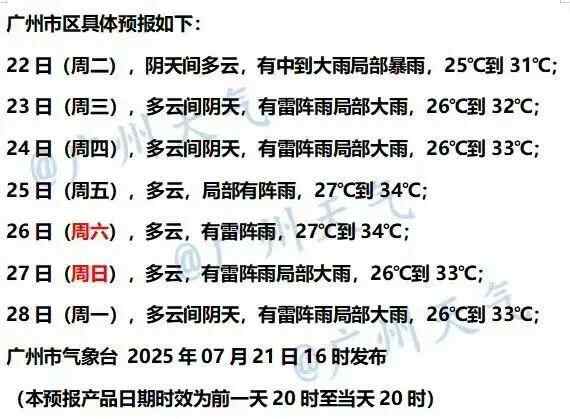 未来七日广州市区天气预报——