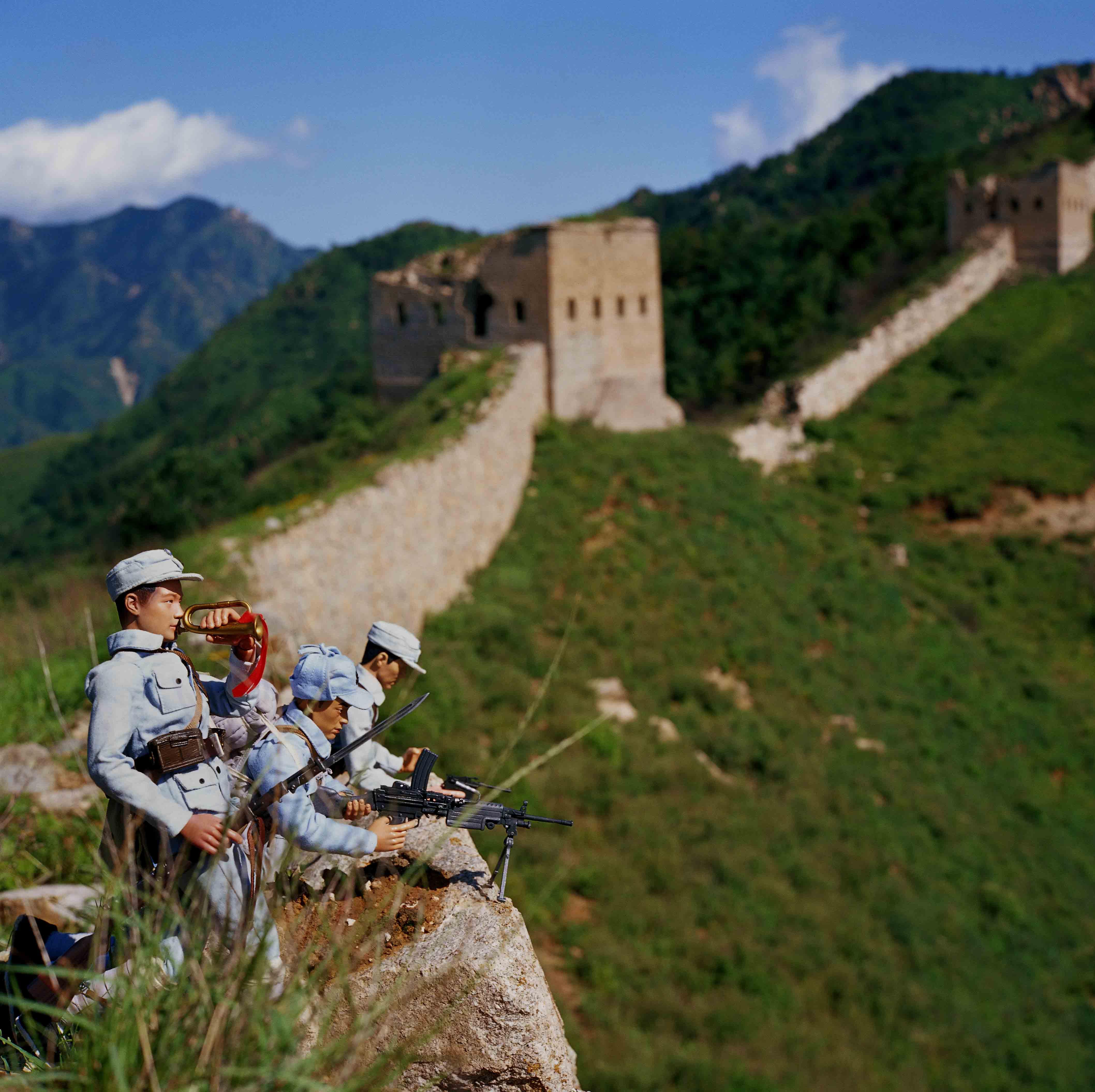 “我的摄影作品全部用真实的场景与模型完成,有人问,你照片中的云彩怎么那么好?这就是我遇到的,包括片中的长城就是慕田峪长城。”在该系列作品中,最让李洁军津津乐道的是他的作品《八路军战斗在浮图峪长城》,正是通过还原沙飞1938年拍摄的《八路军战斗在古长城》所得。