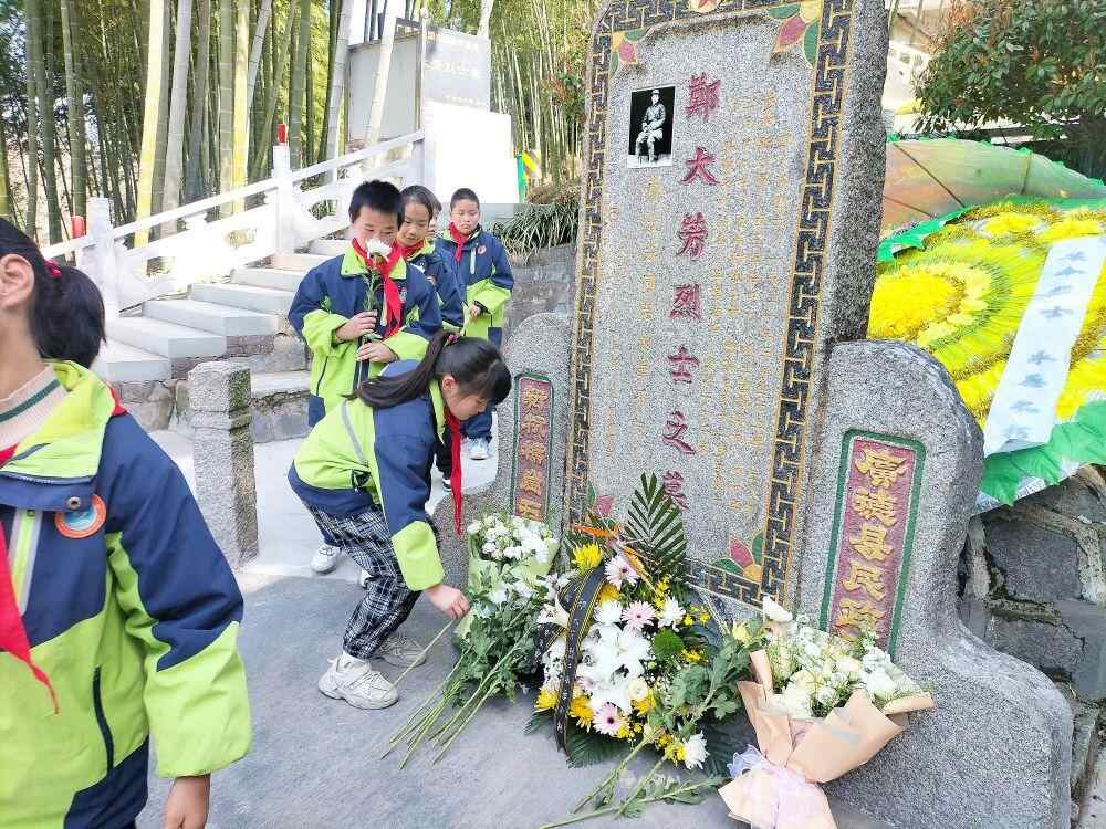 学生在郑大芳烈士墓前敬献鲜花。(受访单位供图)