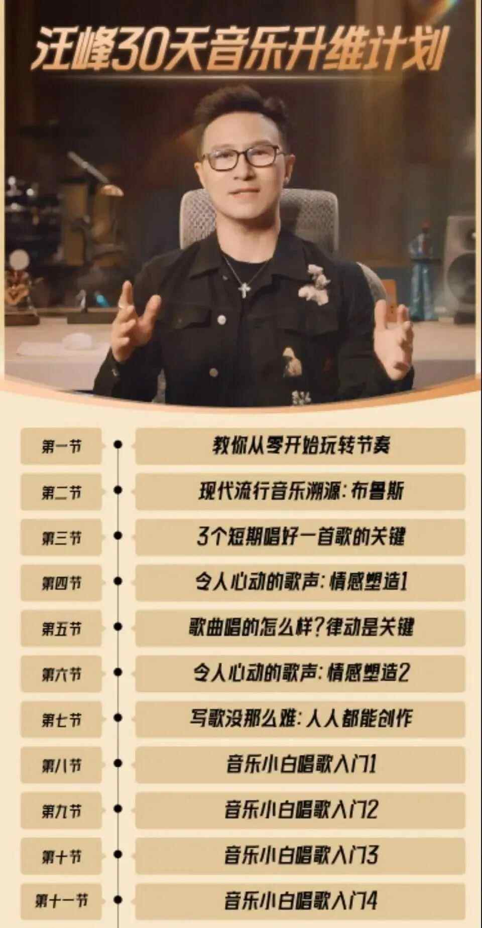 近日,摇滚歌手汪峰联合多名音乐人打造的“汪峰教你学音乐”线上课程上线。汪峰在直播中提到,自己和近百人的团队,花了3个多月录制了这套音乐课程。