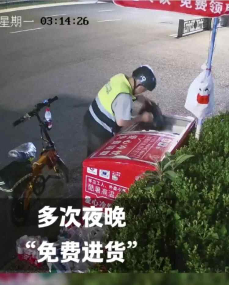 如今3年过去了,这台爱心冰箱仍在正常运转。没想到,7月19日爱心冰箱抖音号却发布了一段视频:一名身着某代驾平台马甲的男子在7月7日、8日、9日凌晨连续到爱心冰箱“免费进货”,原本规矩是每人领取一瓶水,他却用塑料袋打包装走很多瓶水。